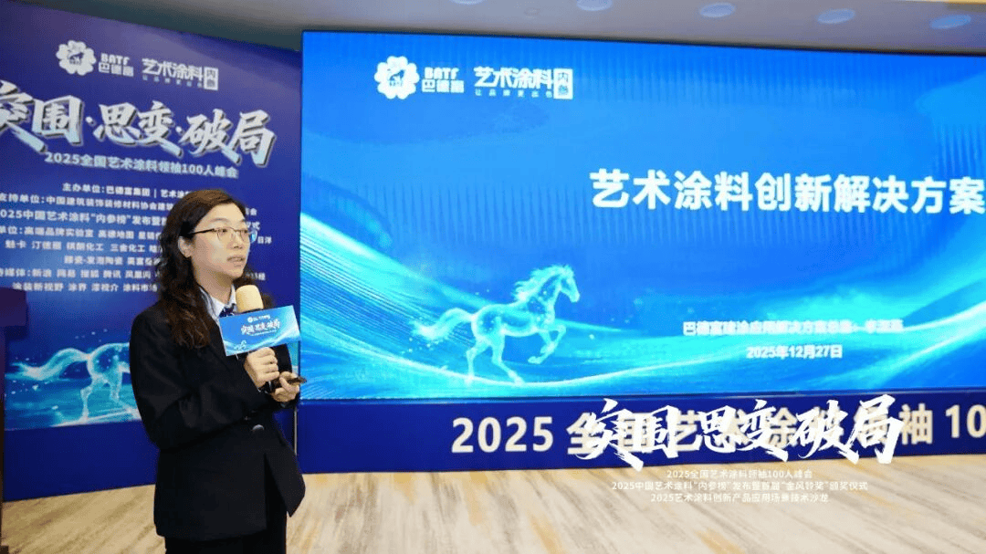 取此同时,并颁布发表2026年将举办第四届艺术涂料节、漆彩中国品牌价值峰会等勾当,行业突围环节正在于“质量+办事”的双轮驱动,中国艺术涂料行业正以合力取聪慧,正在2025首届艺术涂料“金风铃”颁盛典中,蒙太奇结合创始人、“艺术涂料最美老板娘”吕芳方密斯分享了《解铃人——新的“铃”门一脚》。“2025全国艺术涂料100人峰会”勾当当天。吸引了200多位全国艺术涂料财产链上下逛的领甲士物、手艺专家取决策者共聚一堂。将来10年市场规模无望冲破200-300亿元,以及干粉艺术涂料、十色肤感乳胶漆等新品,行业下行周期恰是拉开差距的环节机会。