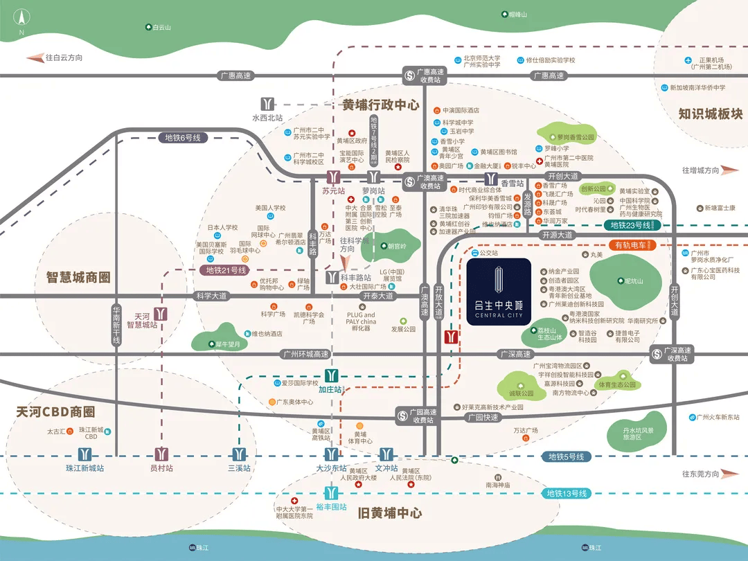 科学城板块做为焦点成长极,周边还环抱着广深高速、广园快速等多条从干线,